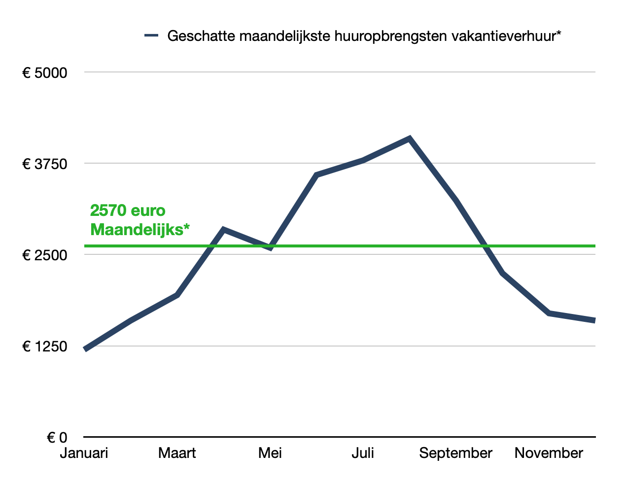Met een gemiddelde bezettingsgraad van 65%* over een volledig jaar, betaalt de vakantieverhuur dus een deel van jouw investering terug.